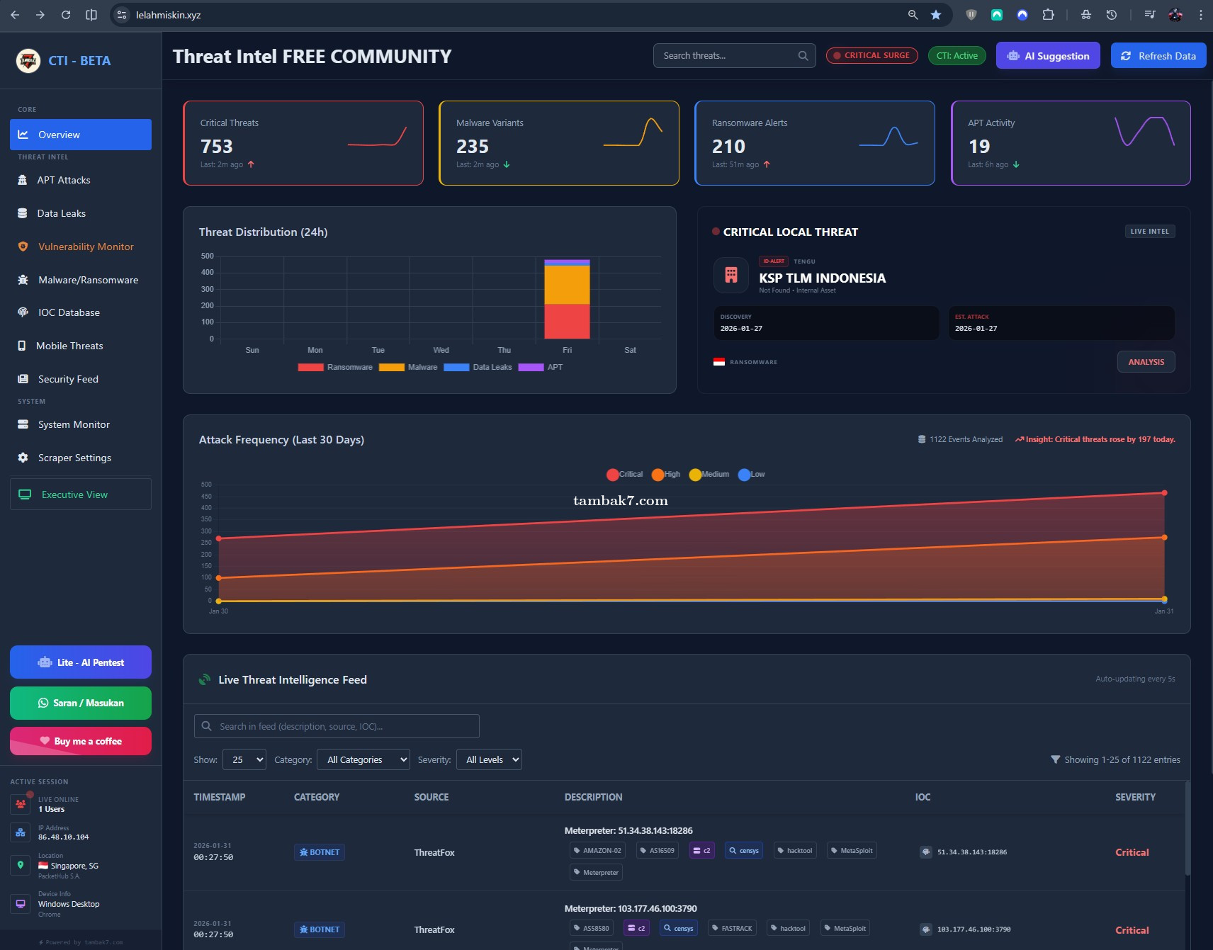 Demo Threat Intel (akses demo disini https://tambak7.com/demo/ti/ti.html) — cocok nih untuk generasi muda yang pengen . . . 0